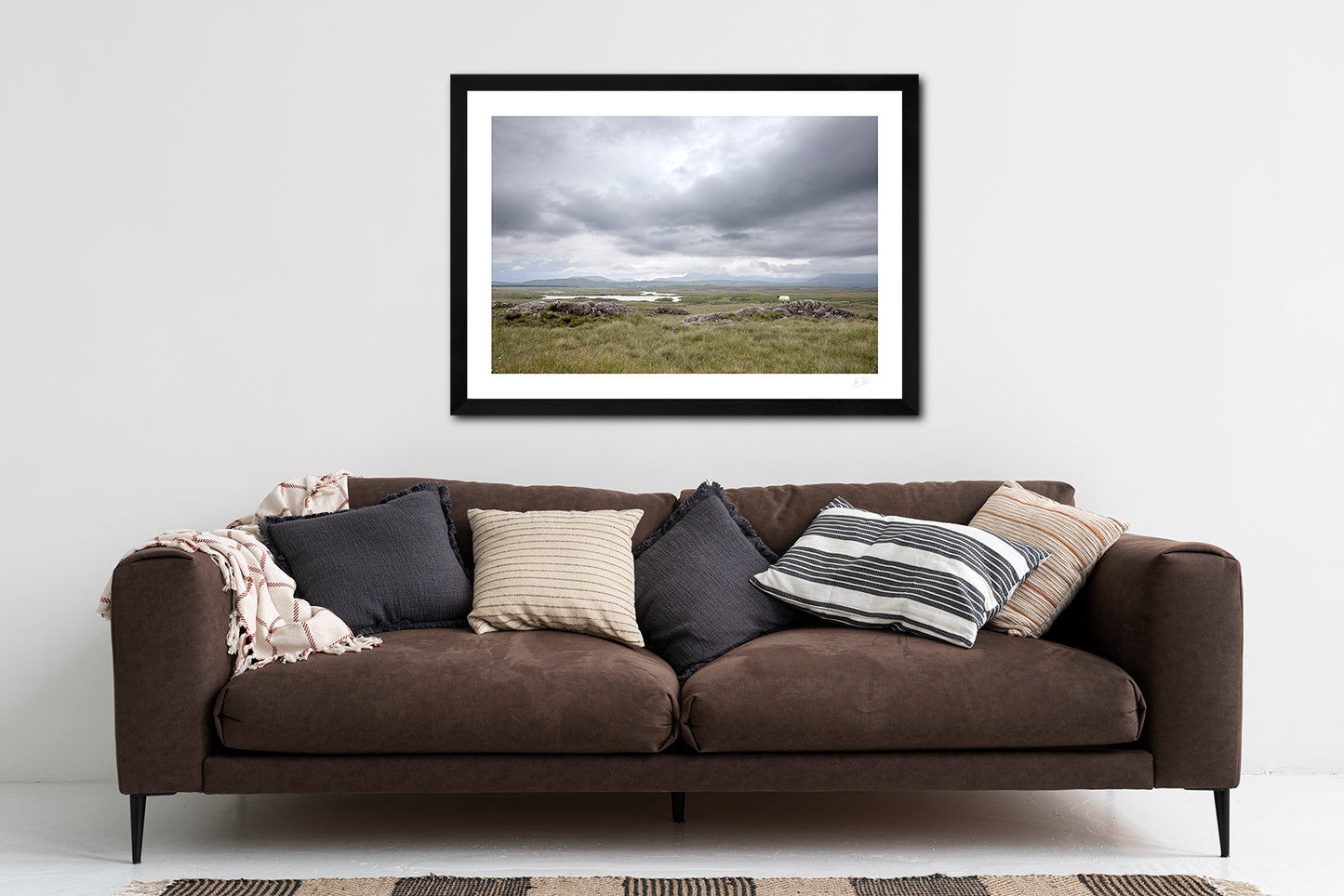 Another visit to The Bog Road (my favourite road) in Connemara, this time on a wet and windy evening, elements that can always provide drama to any scene. The dark clouds and the desaturated colour of the grass just needed a subject to bring it all together. I was in luck! A lone sheep caught my attention. Standing on a rock, looking out over the bog lands, like a king surveying it's domain. Thankfully it was also a good enough model to stay put long enough for me to get the shot I liked.